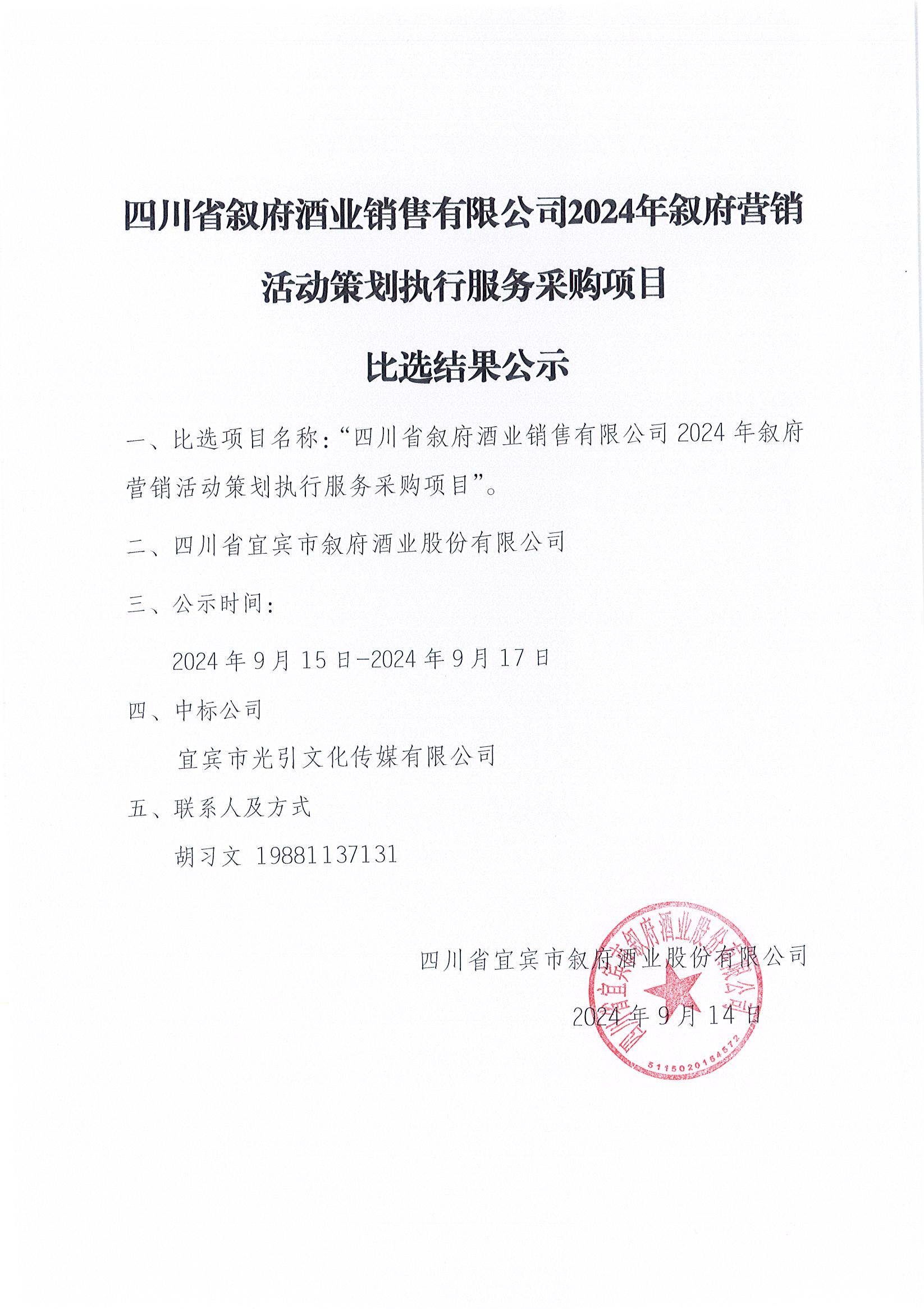 四川省敘府酒業(yè)銷售有限公司2024年敘府營銷活動策劃執(zhí)行服務(wù)采購項目比選公示公告