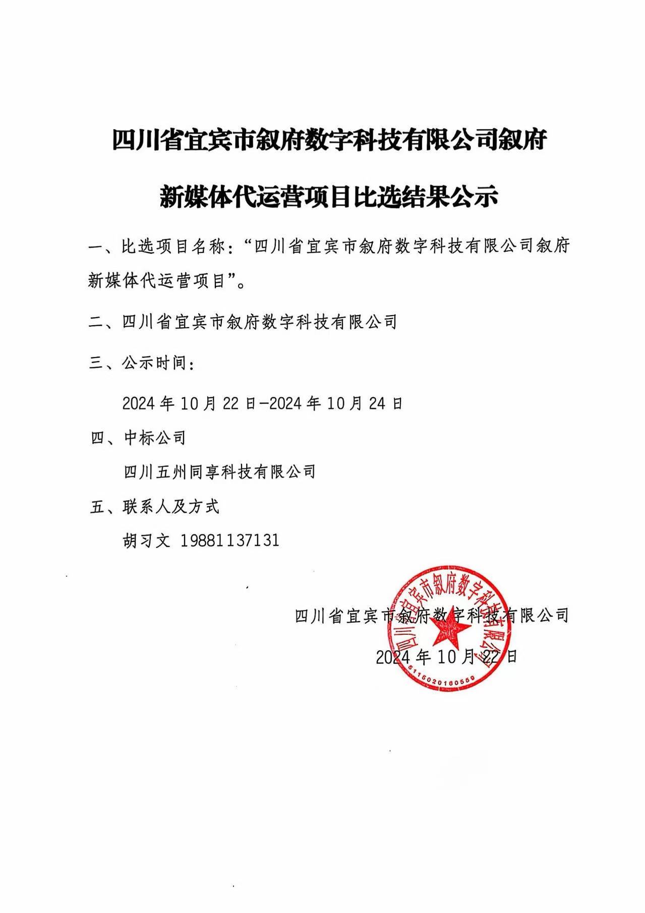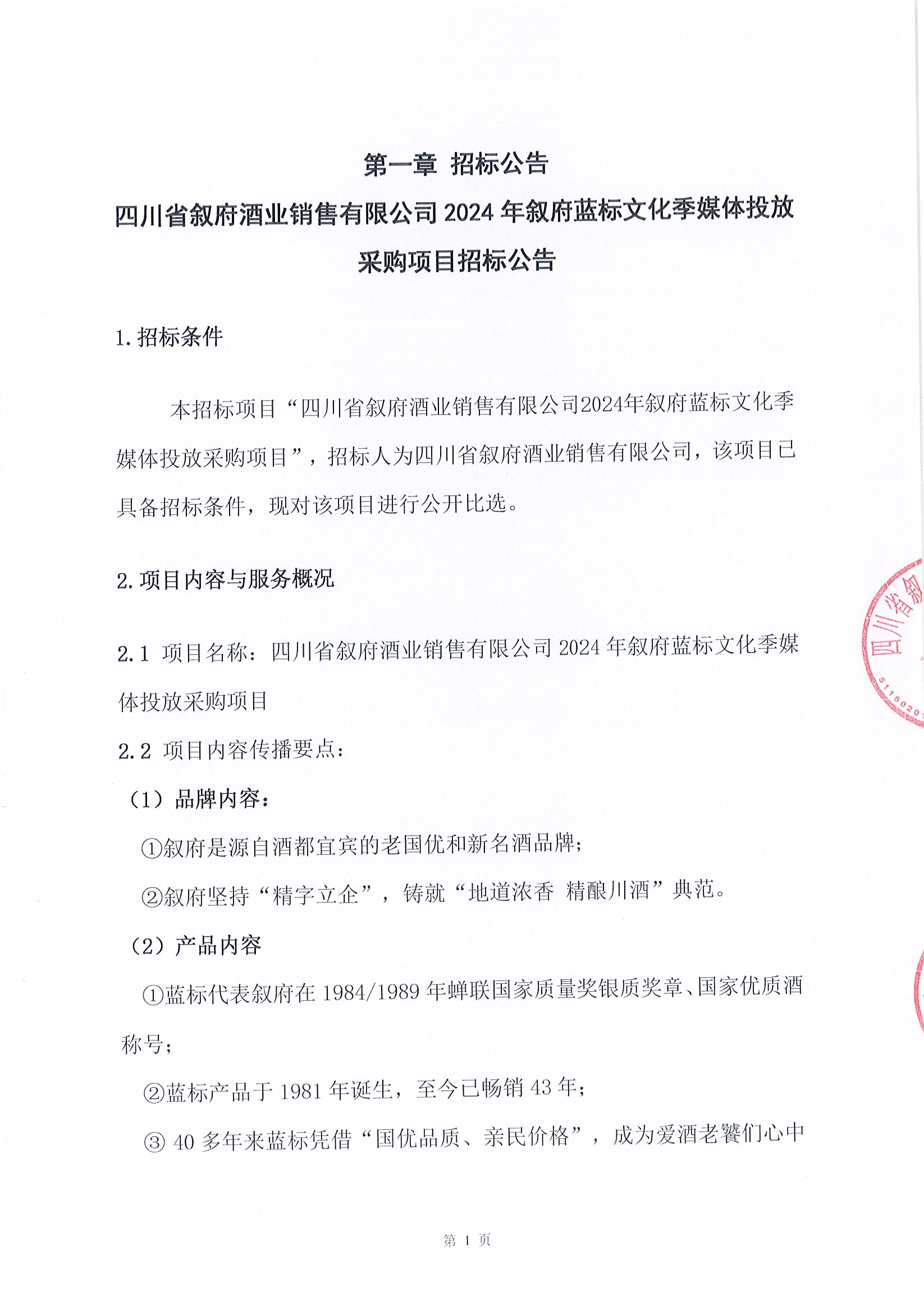 四川省敘府酒業(yè)銷售有限公司2024年敘府藍標文化季媒體投放采購項目比選公示公告