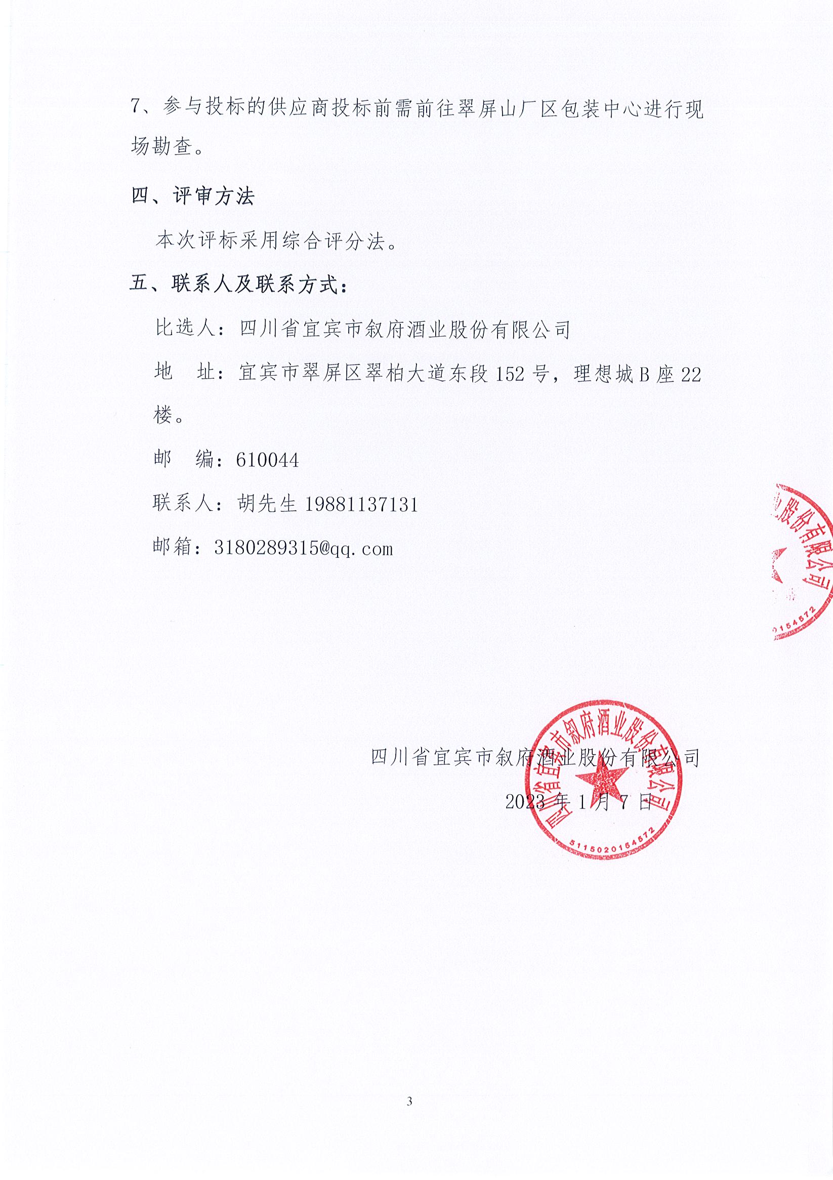 四川省敘府酒業(yè)銷(xiāo)售有限公司敘府大曲(藍(lán)標(biāo))產(chǎn)品TVC的創(chuàng)作與拍攝采購(gòu)項(xiàng)目中標(biāo)結(jié)果公示公告