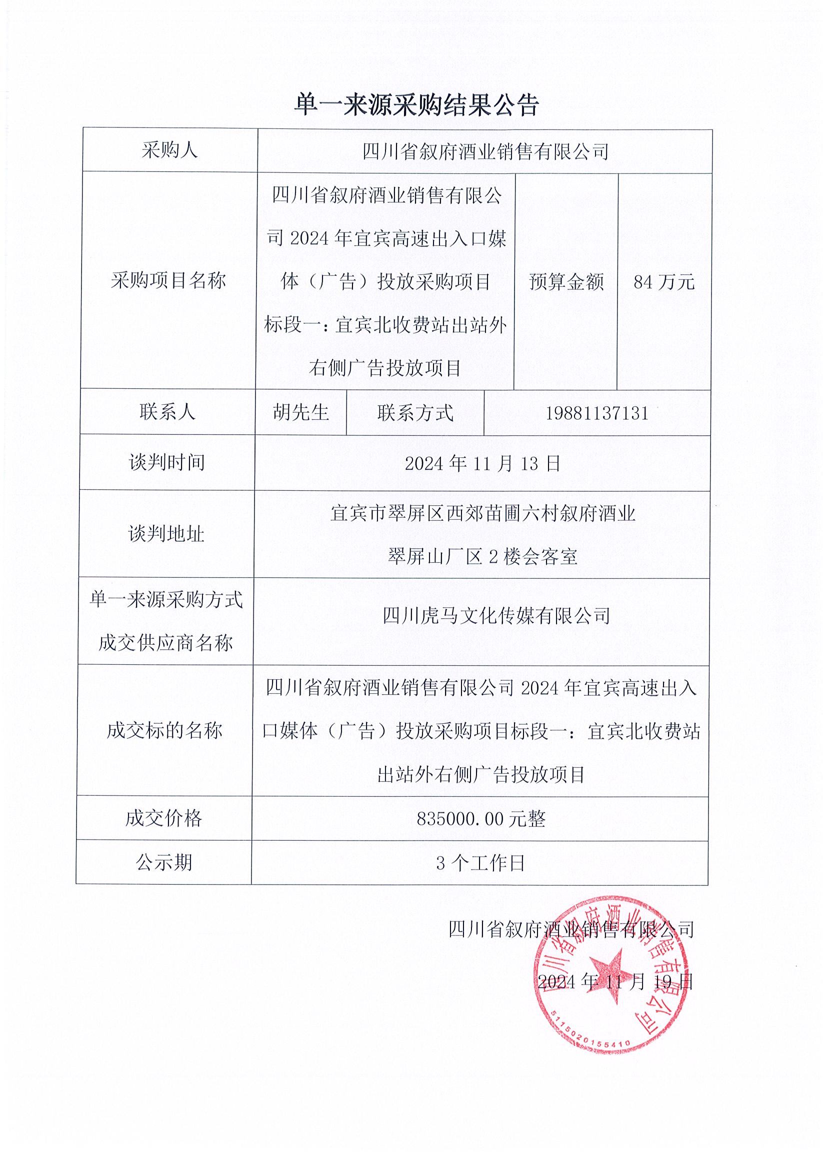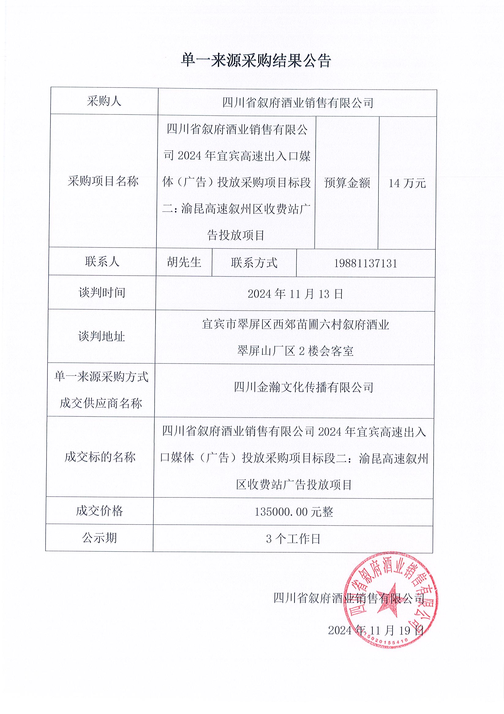 四川省宜賓市敘府酒業(yè)股份有限公司物流運(yùn)輸服務(wù)采購項(xiàng)目比選結(jié)果公示