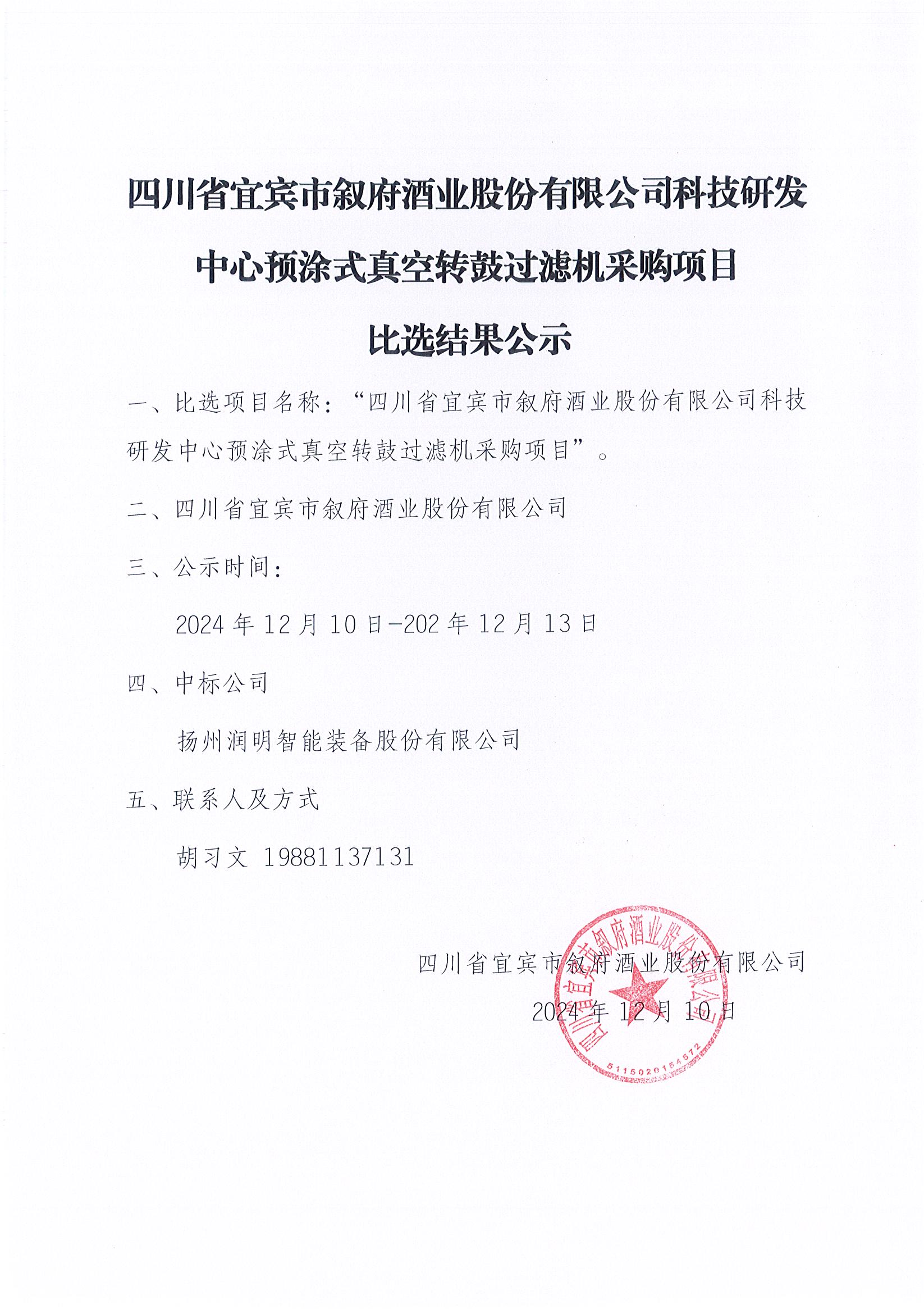 四川省敘府酒業(yè)銷售有限公司敘府大曲(藍標)產(chǎn)品TVC的創(chuàng)作與拍攝采購項目中標結(jié)果公示公告