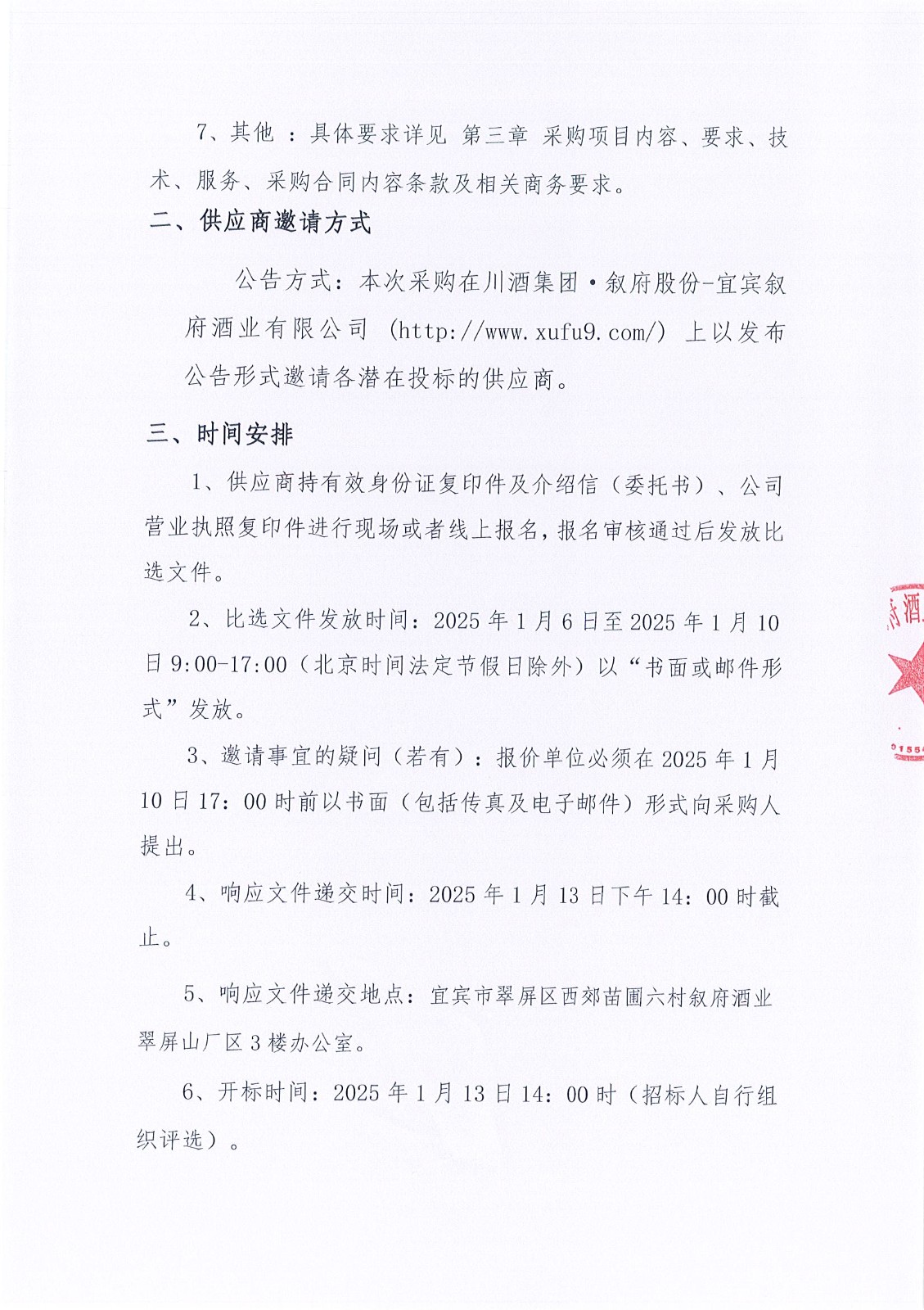 四川省敘府酒業(yè)銷售有限公司2024年四季度(藍(lán)標(biāo))敘府大曲氣模采購項(xiàng)目比選公告
