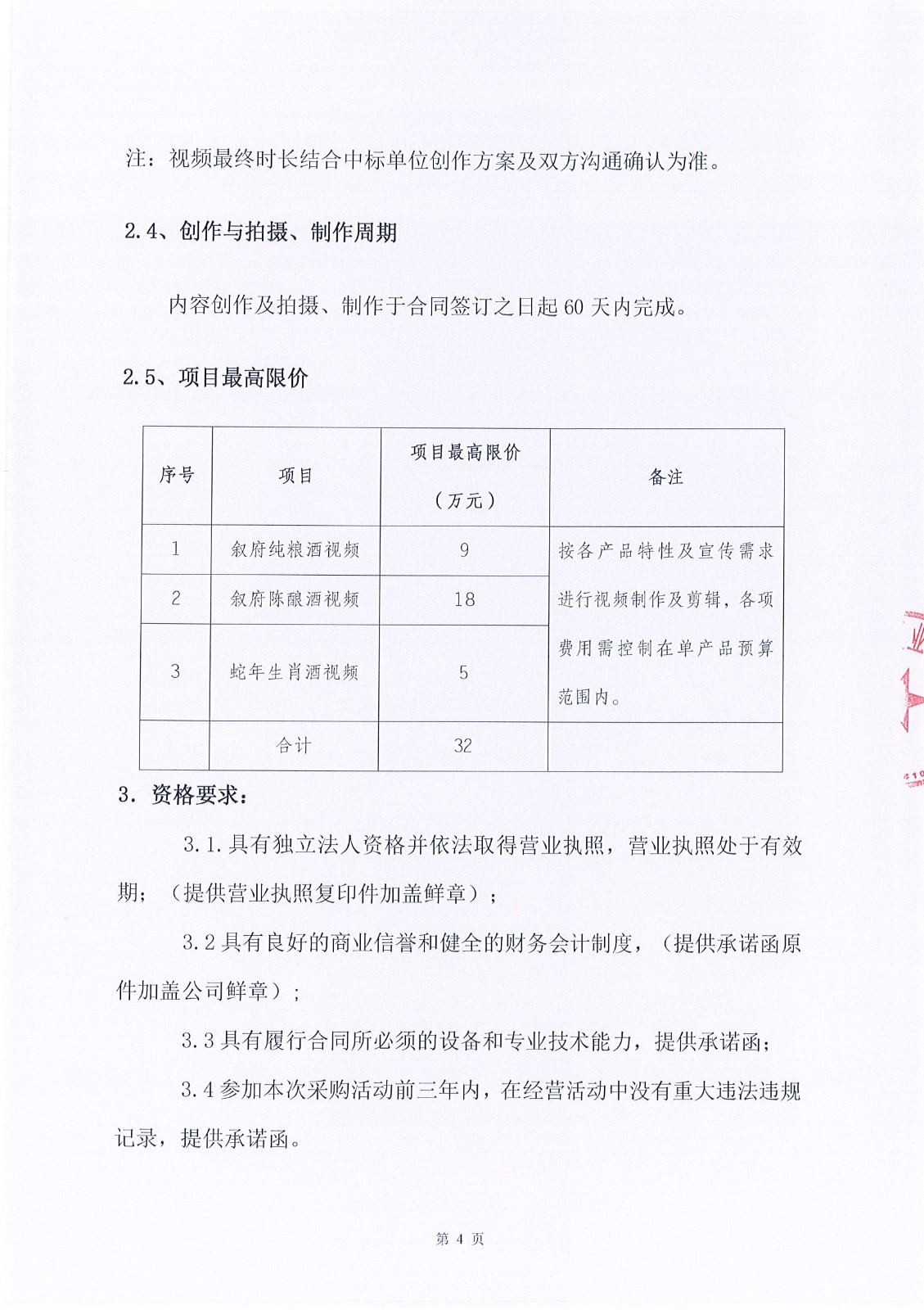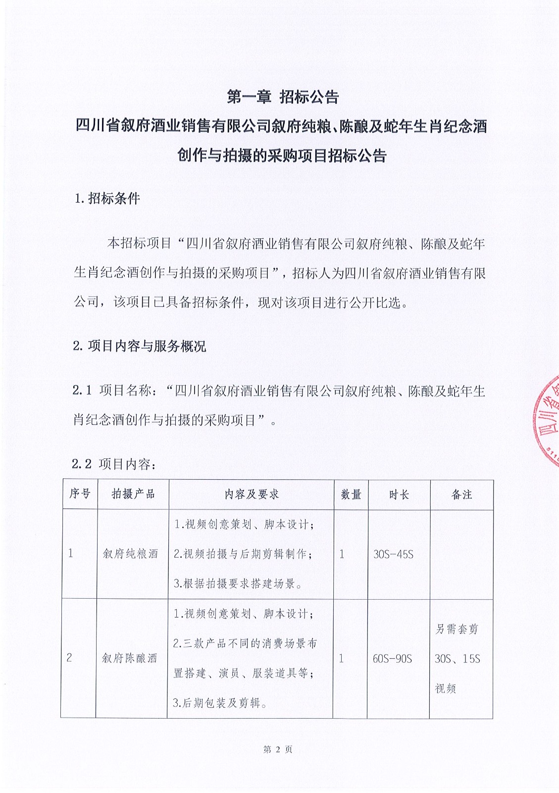 四川省敘府酒業(yè)銷售有限公司敘府大曲(藍(lán)標(biāo))產(chǎn)品TVC的創(chuàng)作與拍攝采購項(xiàng)目中標(biāo)結(jié)果公示公告