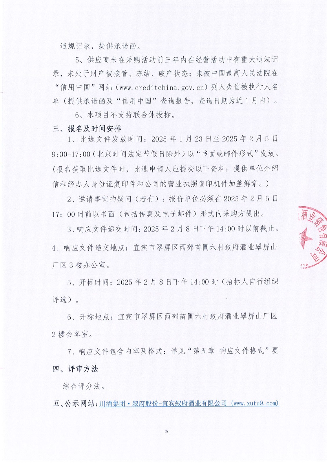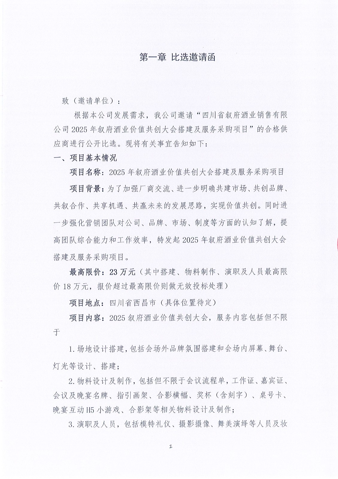 四川省敘府酒業(yè)銷售有限公司2025年敘府酒業(yè)價值共創(chuàng)大會搭建服務(wù)采購項(xiàng)目比選結(jié)果公示公告