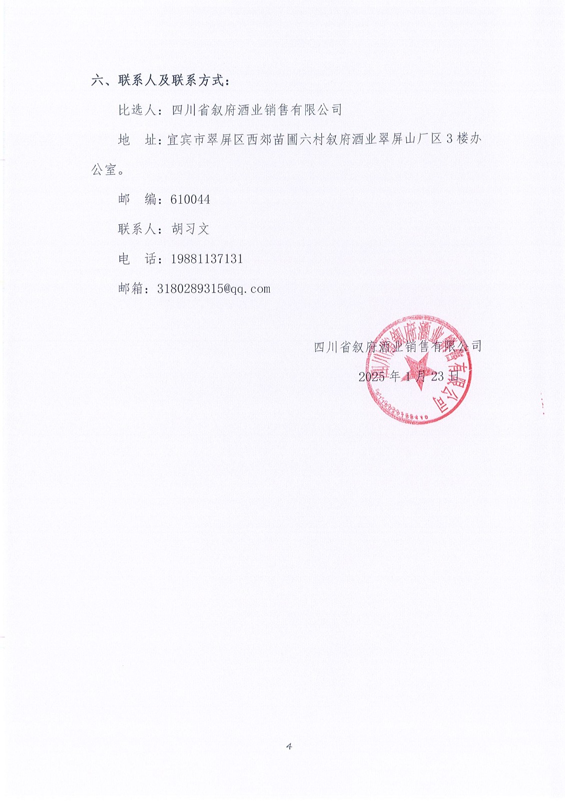四川省敘府酒業(yè)銷售有限公司敘府純糧、陳釀及蛇年生肖紀(jì)念創(chuàng)作與拍攝采購項(xiàng)目比選結(jié)果公示公告
