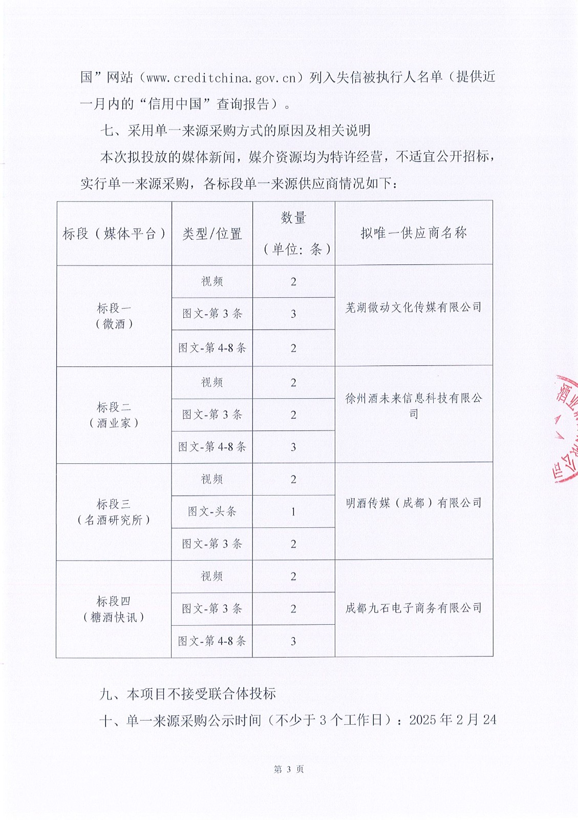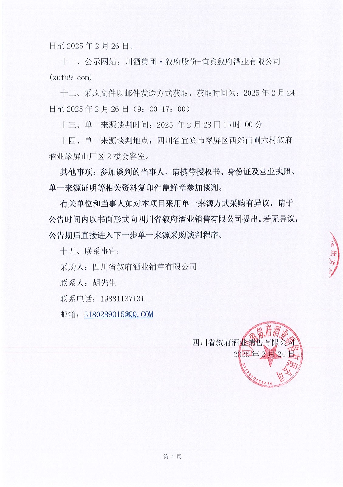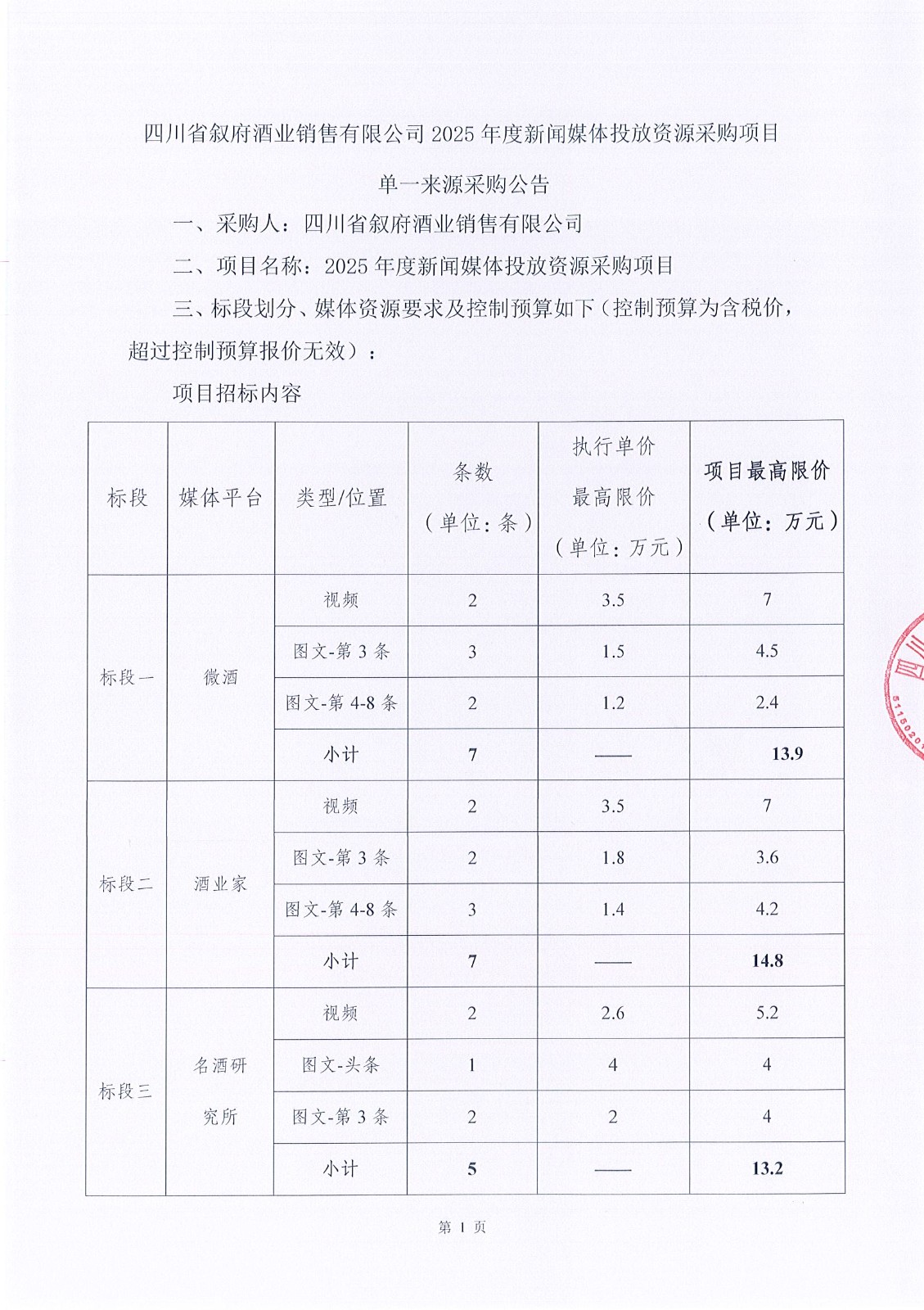 四川省敘府酒業(yè)銷售有限公司2025年度新聞媒體投放資源采購項(xiàng)目單一來源采購邀請書