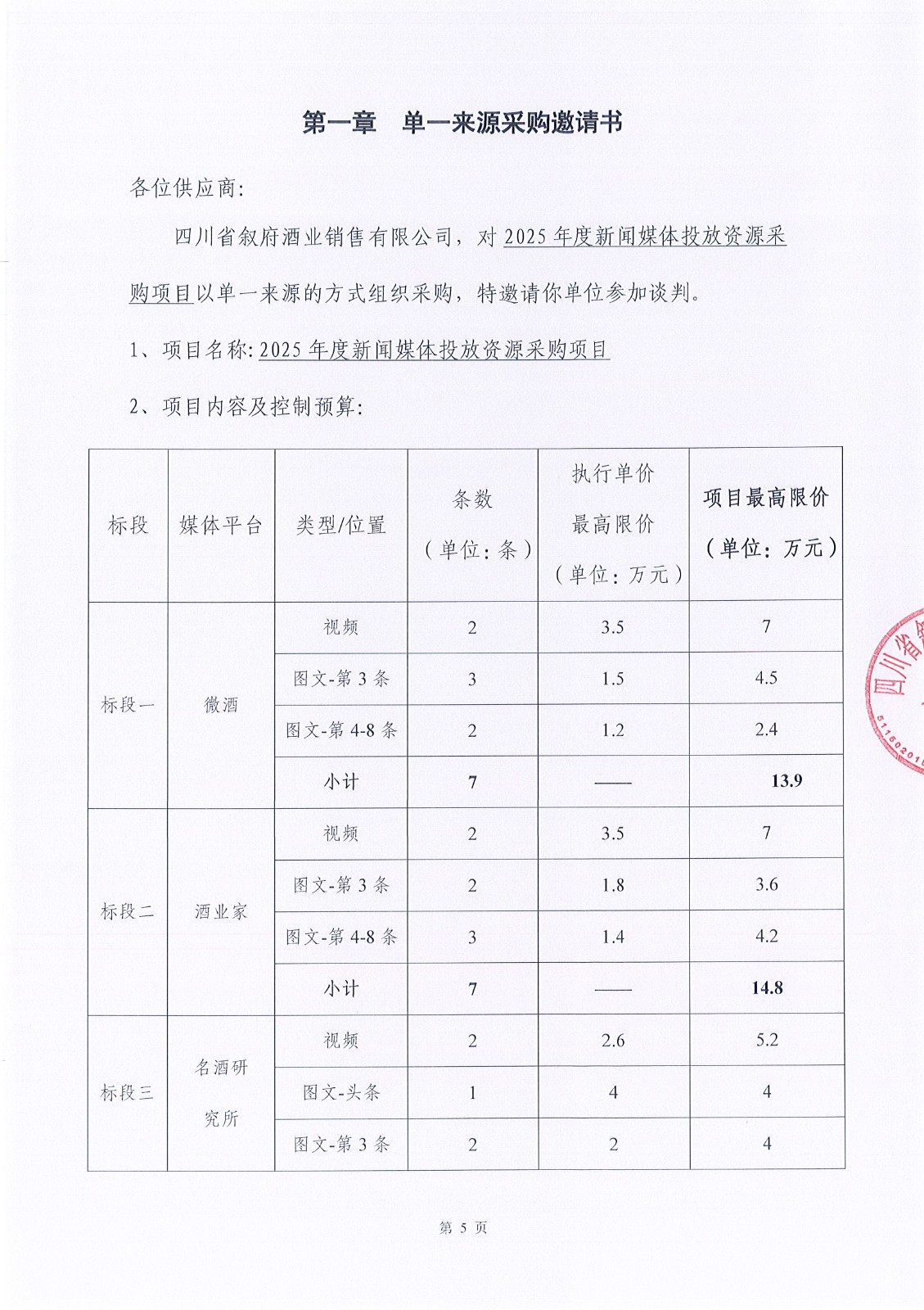 四川省敘府酒業(yè)銷售有限公司2025年度新聞媒體投放資源采購(gòu)項(xiàng)目 單一來源采購(gòu)公告