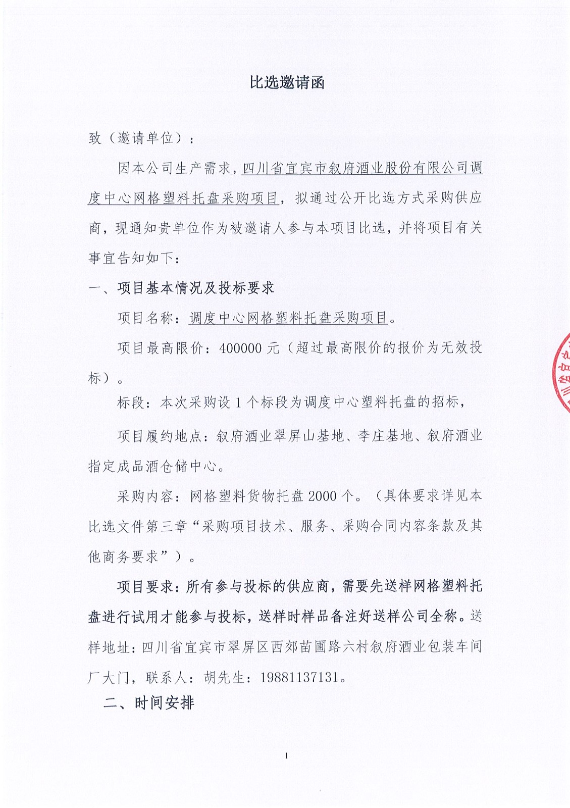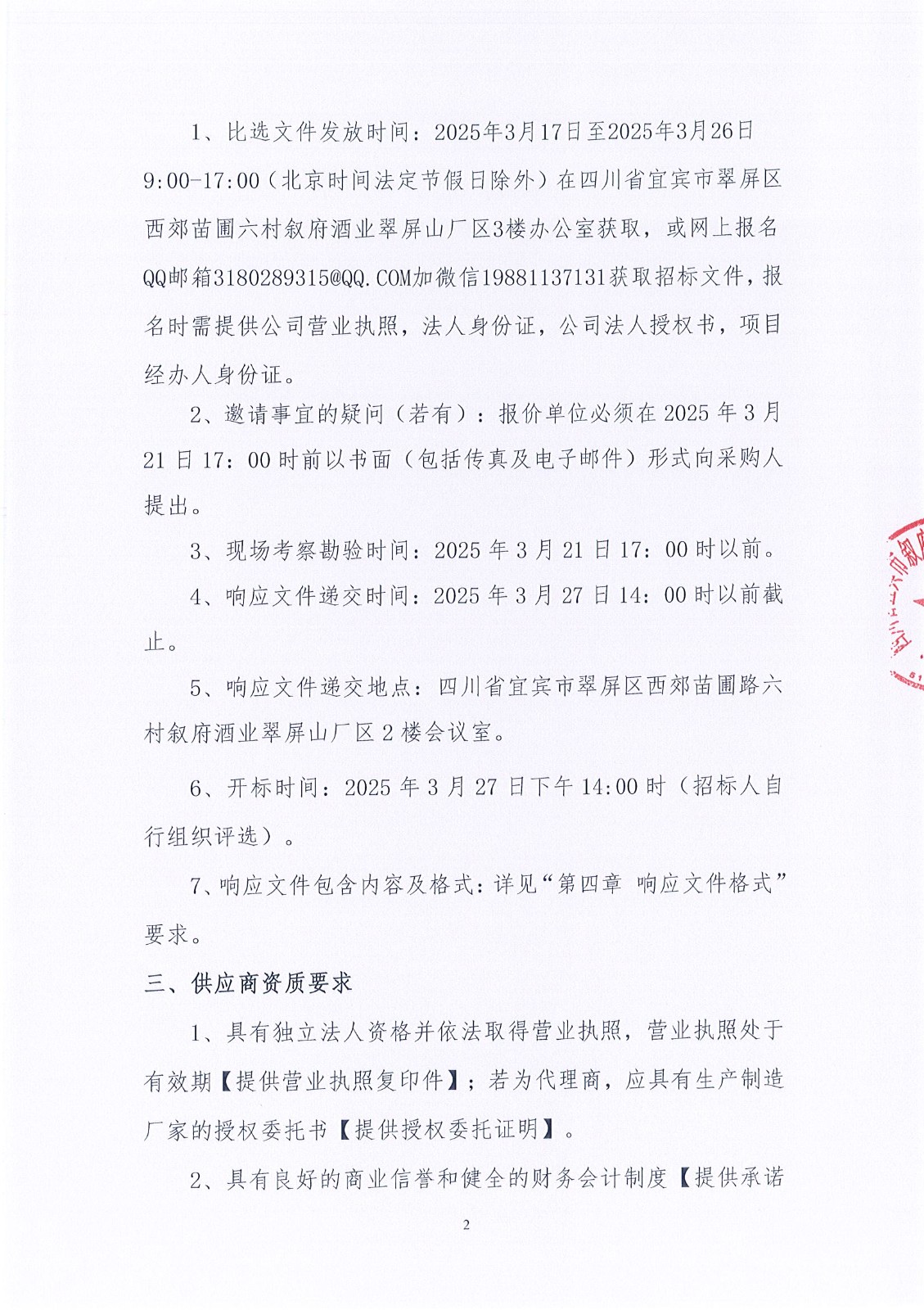 四川省宜賓市敘府酒業(yè)股份有限公司2025年度生產(chǎn)一線工作裝采購項目比選公告