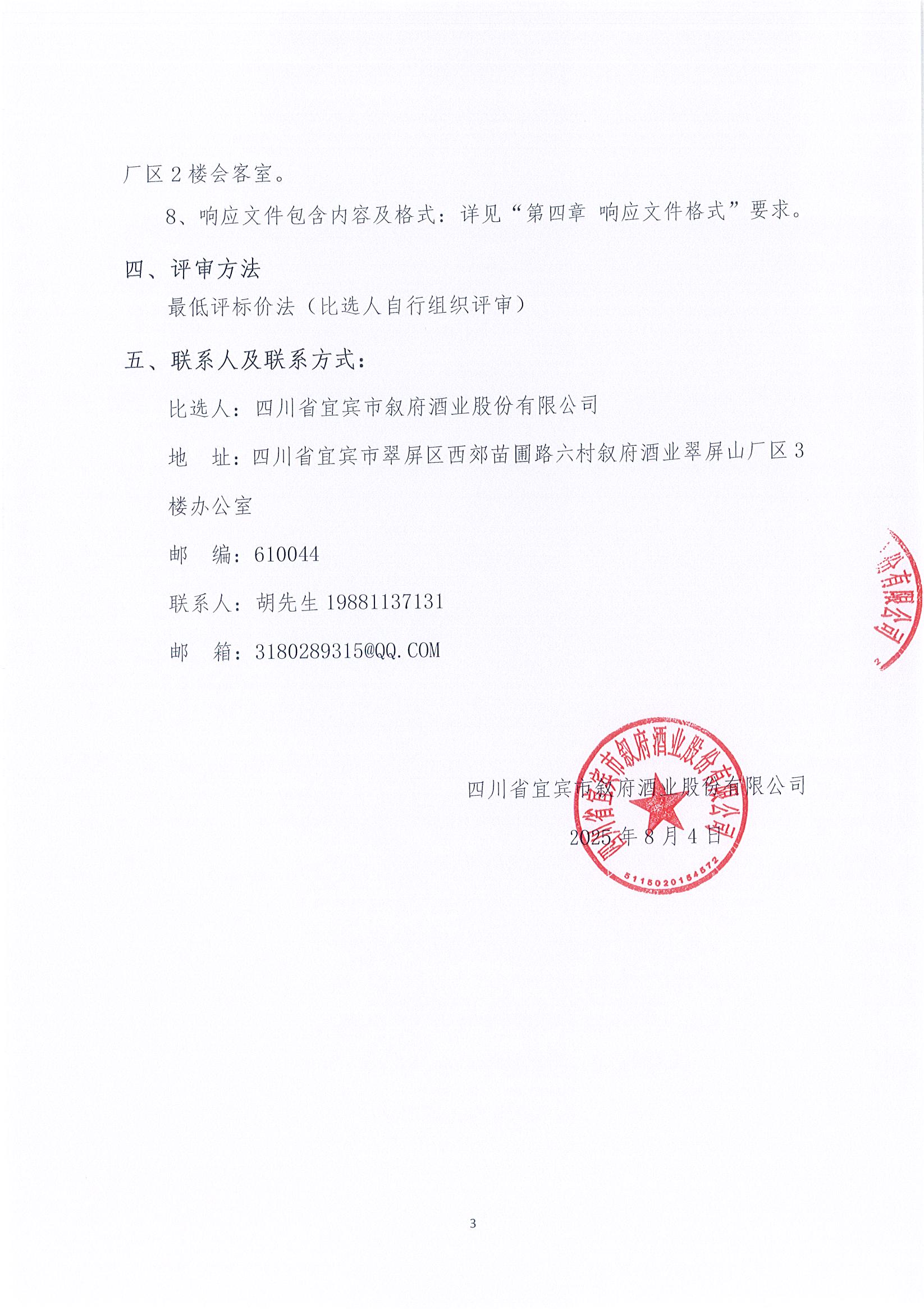 四川省宜賓市敘府酒業(yè)股份有限公司2025年熱季檢修項(xiàng)目流標(biāo)公告