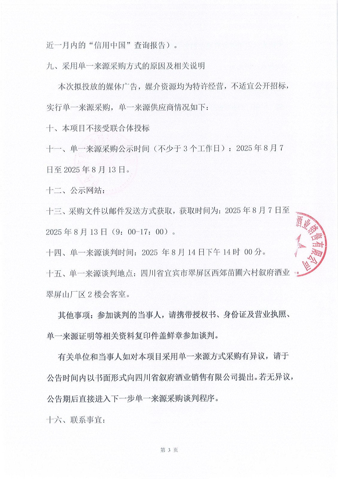四川省敘府酒業(yè)銷售有限公司敘府品牌直播間采購項目招標公告
