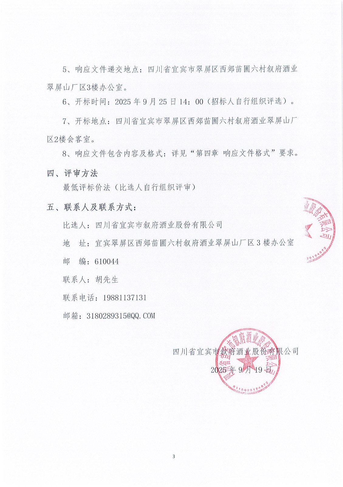 四川省宜賓市敘府酒業(yè)股份有限公司草簾采購項(xiàng)目比選結(jié)果公示
