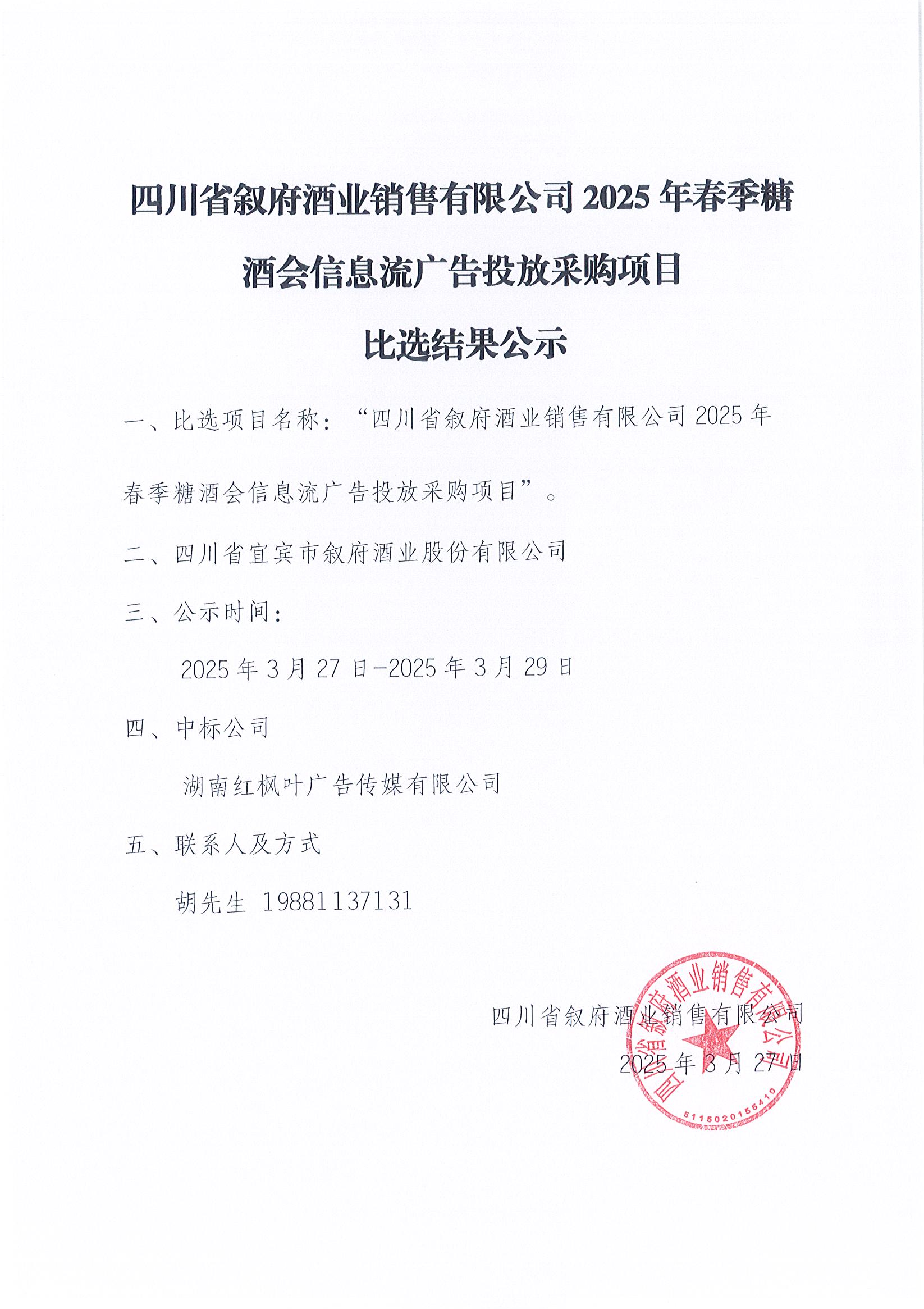 第二次四川省敘府酒業(yè)銷售有限公司2025年度敘府品牌設(shè)計(jì)服務(wù)采購項(xiàng)目比選結(jié)果公示