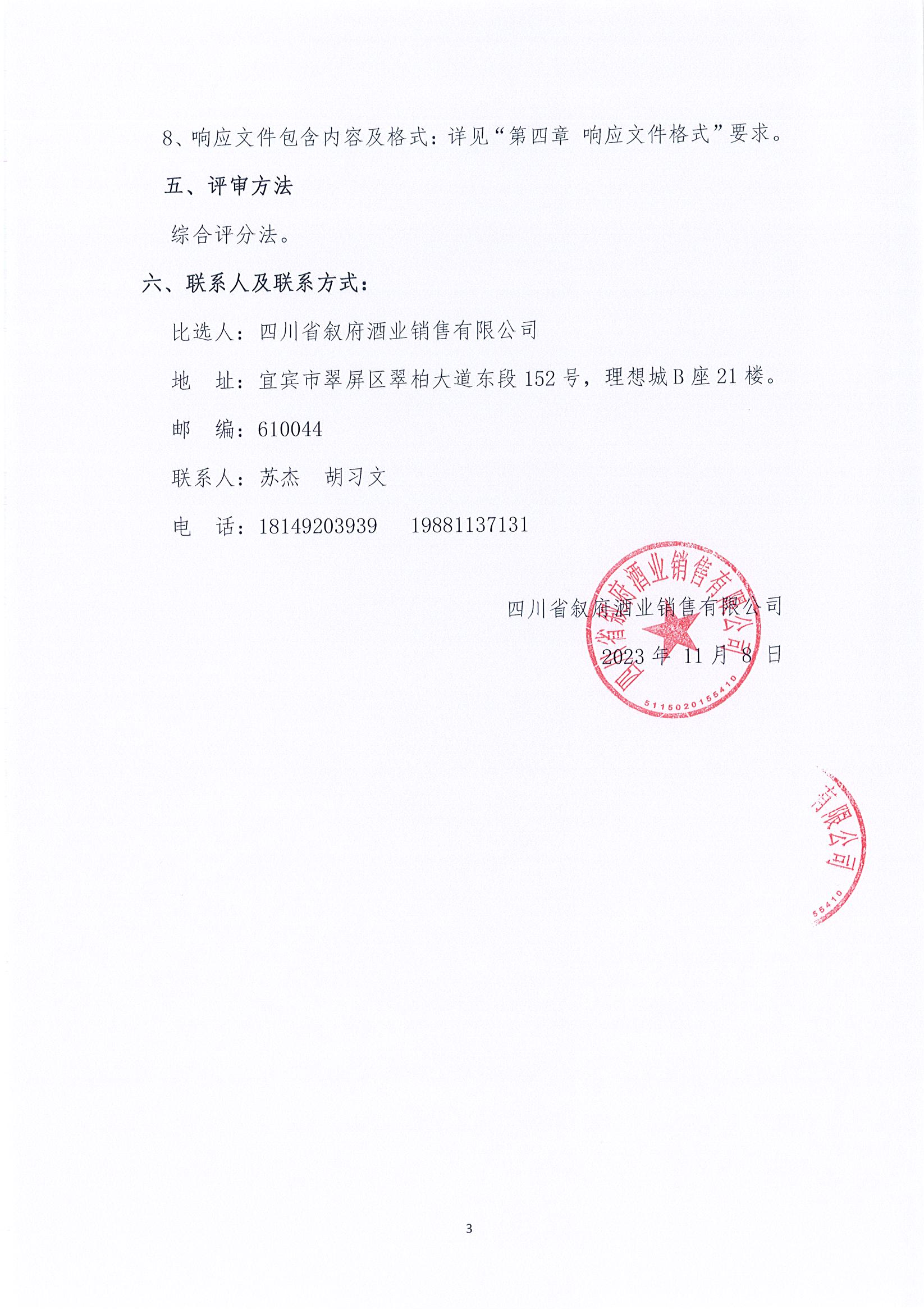 四川省敘府酒業(yè)銷售有限公司敘府大曲(藍(lán)標(biāo))產(chǎn)品TVC的創(chuàng)作與拍攝采購項(xiàng)目中標(biāo)結(jié)果公示公告