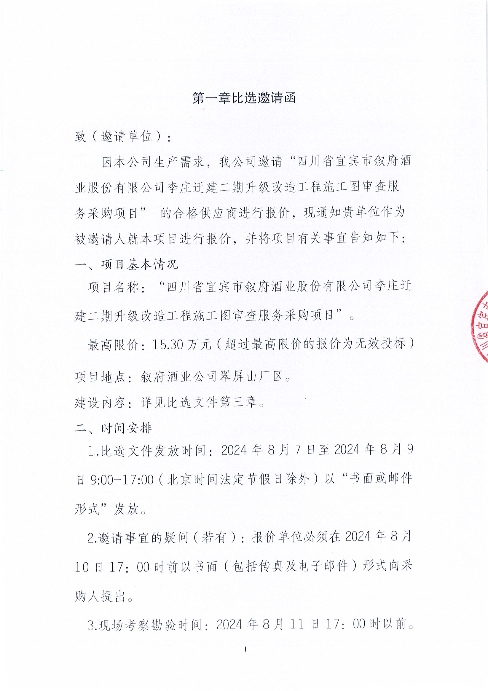 四川省宜賓市敘府酒業(yè)股份有限公司 翠屏山廠區(qū)2024-2025年丟糟出售項目競價邀請函公示公告