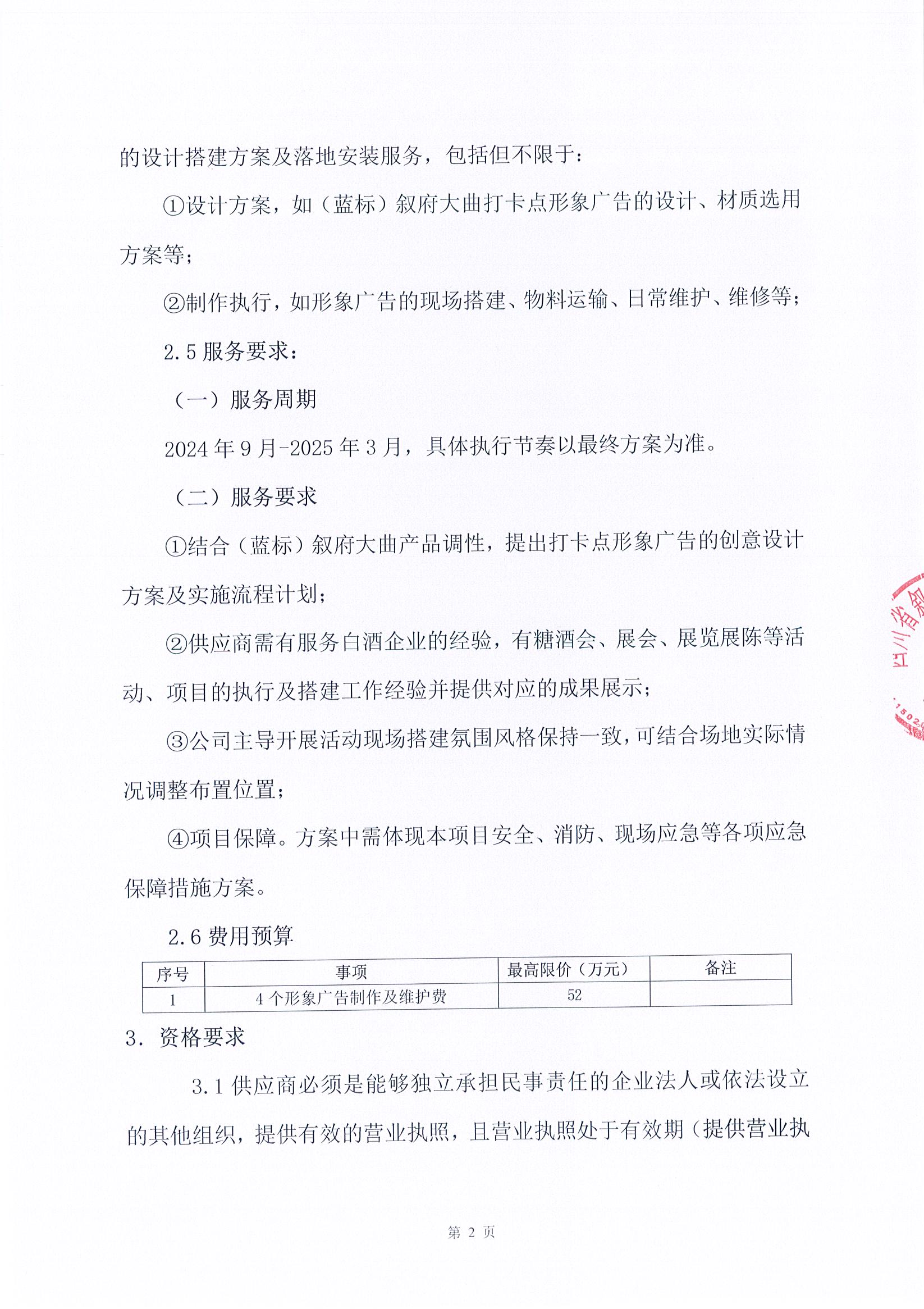四川省敘府酒業(yè)銷售有限公司2024年敘府藍(lán)標(biāo)文化季媒體投放采購項(xiàng)目比選結(jié)果公示公告