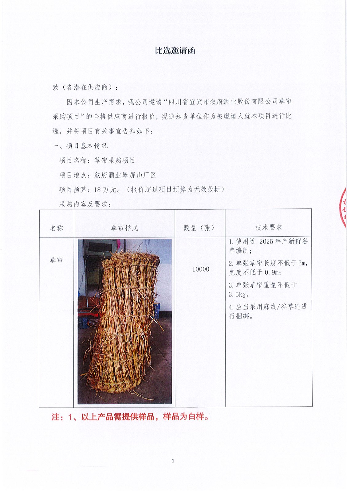 四川省宜賓市敘府酒業(yè)股份有限公司翠屏山廠2025-2026年度丟糟出售采購項(xiàng)目競價(jià)公告
