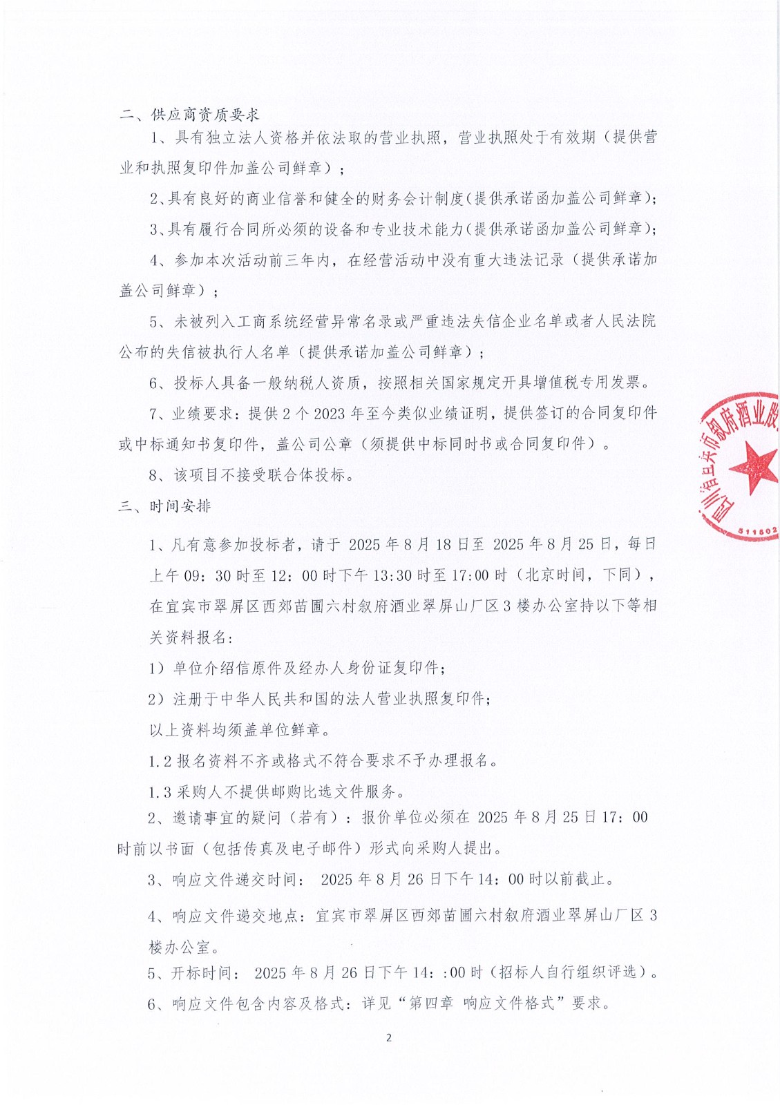 第二次四川省宜賓市敘府酒業(yè)股份有限公司2025年熱季檢修采購項(xiàng)目比選結(jié)果公示
