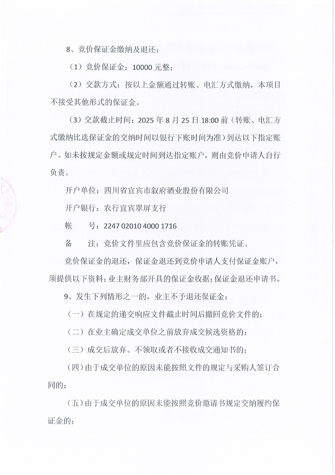 四川省宜賓市敘府酒業(yè)股份有限公司草簾采購項(xiàng)目比選公示公告