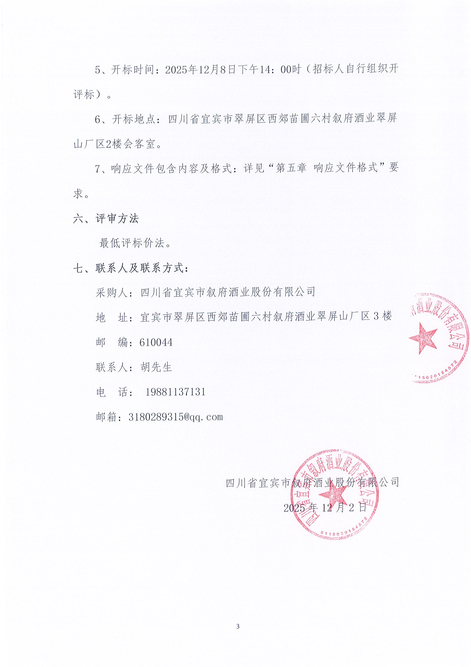 四川省敘府酒業(yè)銷售有限公司敘府核心終端暖心行及城市社區(qū)行、蘑菇單一來源采購項目中標結果公示公告