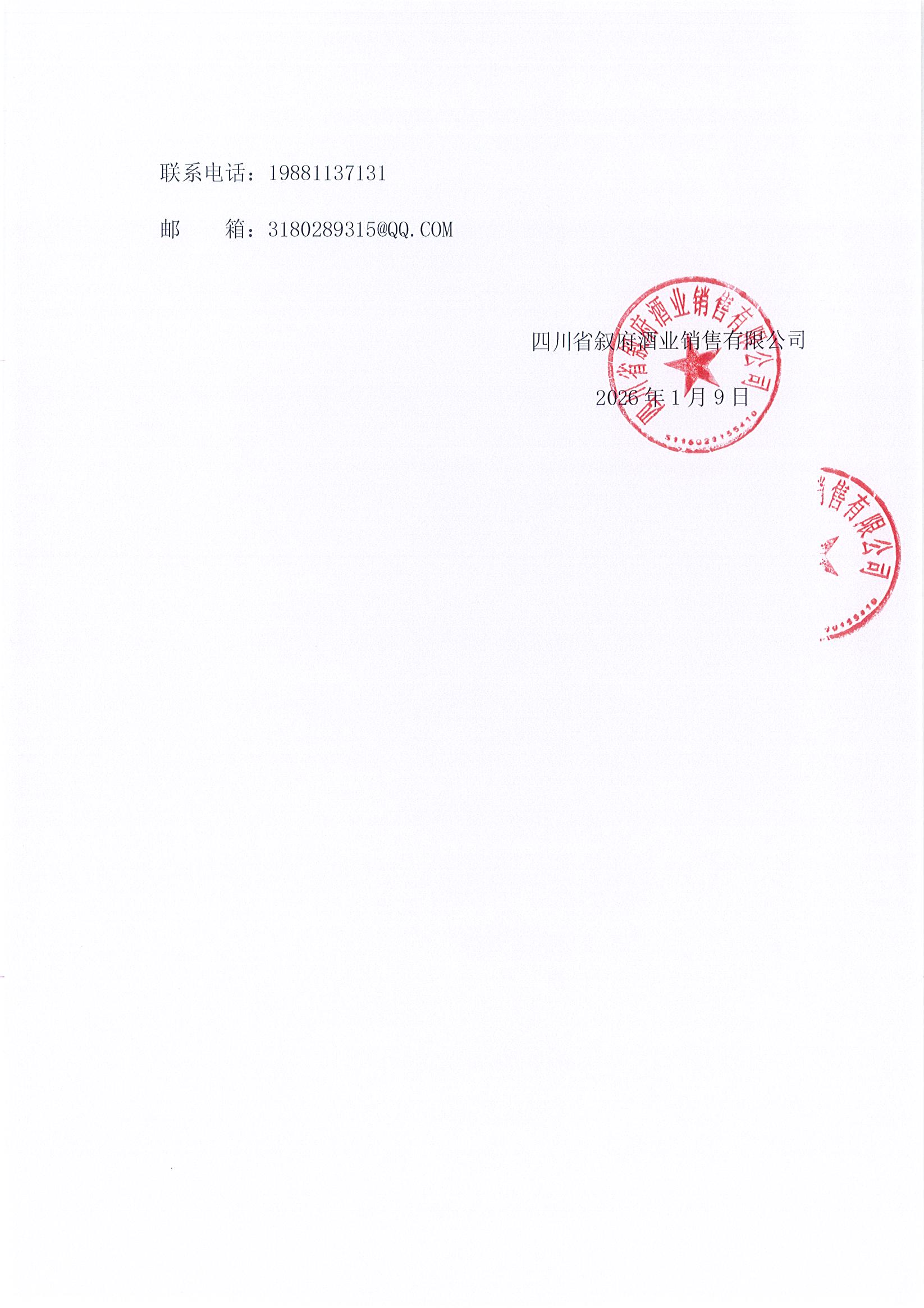 四川省宜賓市敘府酒業(yè)股份有限公司電動(dòng)四輪車采購(gòu)項(xiàng)目流標(biāo)公示公告