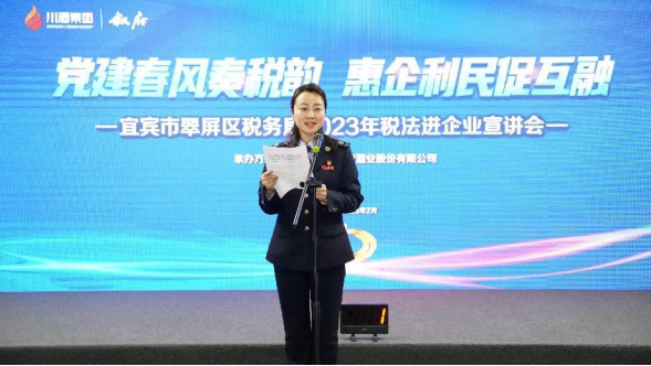 2月24日,翠屏區(qū)稅務(wù)局“2023年稅法進(jìn)企業(yè)宣講會(huì)”來到敘府酒業(yè),在理想城辦公區(qū)會(huì)議室舉辦了一場(chǎng)以“黨建春風(fēng)奏稅韻,惠企利民促互融”為主題的稅法宣講活動(dòng)。區(qū)稅務(wù)局黨委委員、副局長(zhǎng)賀秋,區(qū)稅務(wù)局第二分局副分局長(zhǎng)張榮等蒞臨活動(dòng)現(xiàn)場(chǎng),向川酒集團(tuán)財(cái)務(wù)板塊及相關(guān)部門員工宣講稅法知識(shí),贈(zèng)送財(cái)稅法規(guī)和政策類書籍。